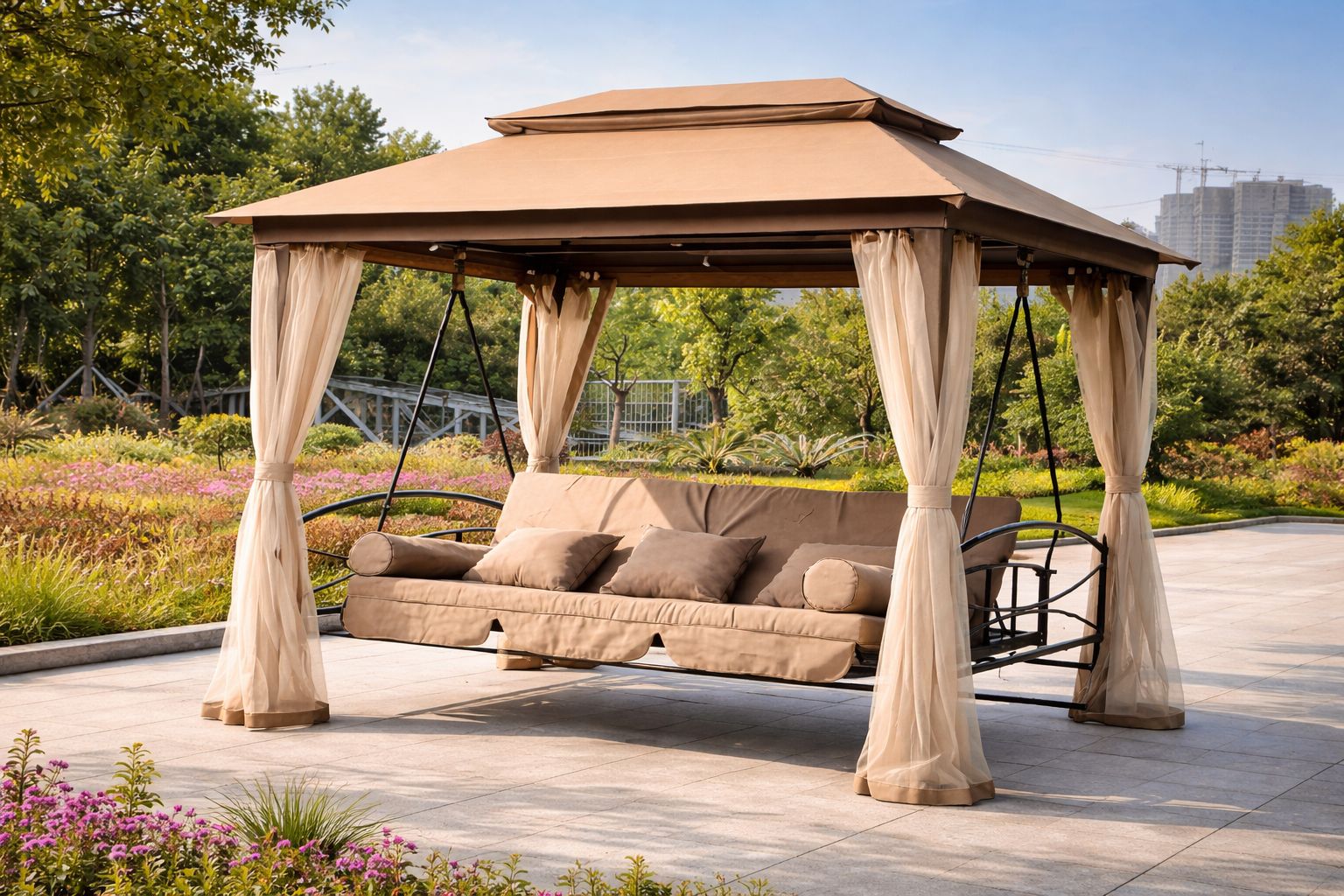Carpa decorativa y funcional, ideal para generar sombra, resguardo y un ambiente más acogedor en terrazas o jardines.