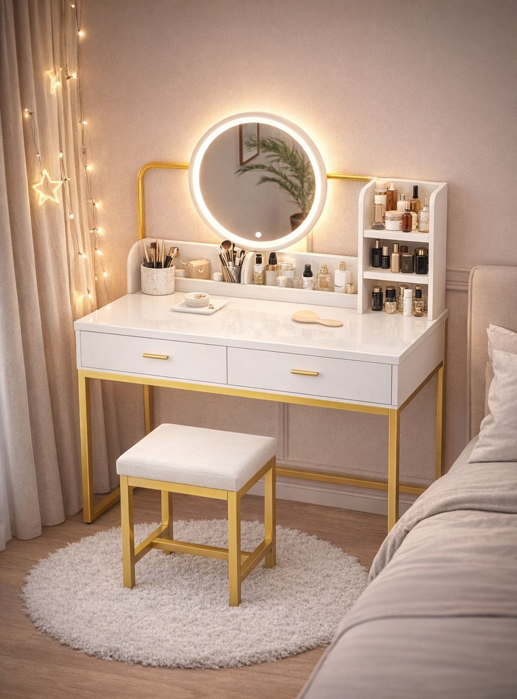 Tocador ideal para organizar maquillaje, accesorios y objetos personales, aportando orden y estilo al dormitorio.