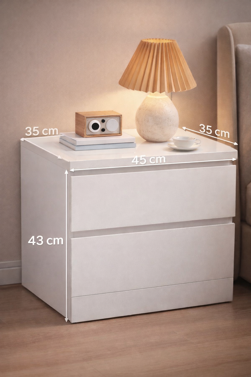 - Ideal como apoyo lateral junto a la cama.