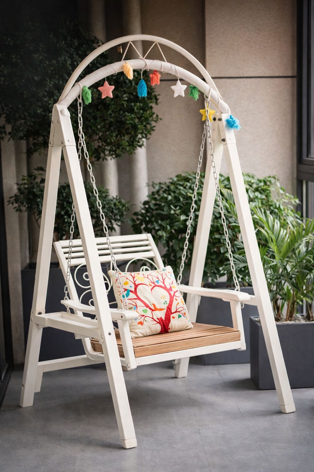 Silla colgante de estilo envolvente, ideal para crear un rincón cómodo y decorativo en interiores protegidos o exteriores.